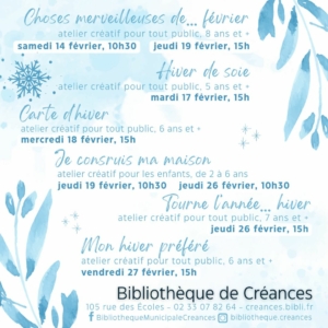 Le site internet de la bibliothèque de Créances : https://creances.bibli.fr